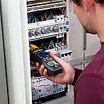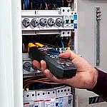 The digital multimeter is a multimeter with a variety of functions. With this multimeter, current measurements up to 200 A AC can be carried out without contact. This current range already covers a wide range of measurements. Contactless current measurements can be taken during operation, eliminating the need for measurement preparation. The multimeter also has a NCV (Not Connected Voltage) measurement, which indicates whether a voltage is present in a line. This feature reduces the risk of electric shock. The multimeter also has functions for measuring resistance, conducting continuity tests, and detecting power fluctuations. Its small and compact design makes it an essential tool for electricians.