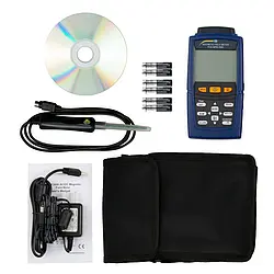 The gauss meter is a reliable device for measuring magnetic fields. It can measure both static and alternating fields. The flat probe allows for measurements in small openings. The wide measuring range of up to 30,000 G covers various tasks. The gauss meter also includes a temperature measurement feature and an adjustable alarm function. This alarm notifies the operator when a predetermined value is exceeded.