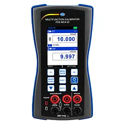 The PCE-MCA 50 process calibrator is designed for calibration and maintenance. It enables the measurement and simulation of electrical quantities. Due to its battery operation, the PCE-MCA 50 can be used in different locations. It offers versatile measurement functions that can be utilized in various areas. The battery can last for up to 17 hours per charge, depending on the application. The measured results can be stored in the internal measured value memory, which has a capacity of up to 15000 values.