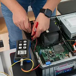 The Pump Calibrator is suitable for testing and setting high-efficiency pumps (HE pumps). It can be used as both an encoder and receiver of PWM signals, allowing for testing of the pump controller as well as the HE pump. PWM signals between 40-2000 Hz can be generated, and the Pump Calibrator can also simulate a 0-10 V process signal. For bidirectional HE pumps, the Pump Calibrator is capable of sending and receiving PWM signals simultaneously. Additionally, the Pump Calibrator displays the volume flow or pump status.