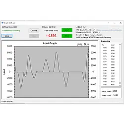 The torque meter for drinking bottles has a USB interface for direct connection to a PC. The software can be used to display and process the measurement data, including a graphical and tabular representation of the measurement process.